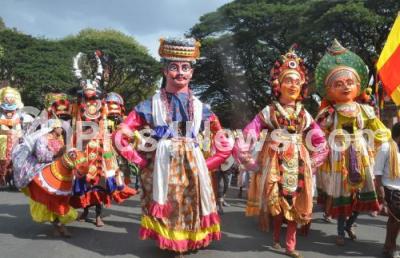 Photo Caption : Cultural procession during the 61st Kannada Rajyotsava Celebration program at SBM Circle, in Bengaluru on Tuesday 1st November 2016