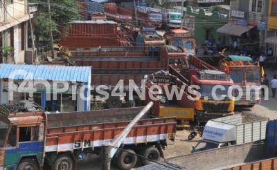 Event Description : Transport Lorries are on strike and were seen parked at Yeshwanthpur yard, Lorry Associations are on indefinite statewide strike till their various demands are fulfilled, in Bengaluru on Saturday 5th November 2016