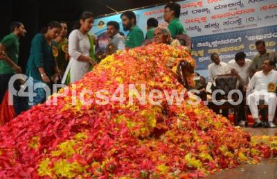 Event Description : Environmentalist Saalumarada Thimmakka was felicitated and presented National Greenery Awards 2016 by Minister Dr G Parameshwar, HS Doreswamy, Freedom Fighter, Dr Veerendra Heggade, administrator of the Dharmasthala Temple and others during the felicitation program at Dr BR Ambedkar Bhavan, organised by Saalumarada Thimmakka International Foundation and Karnataka State Pollution Control Board, in Bengaluru on Saturday 5th November 2016
