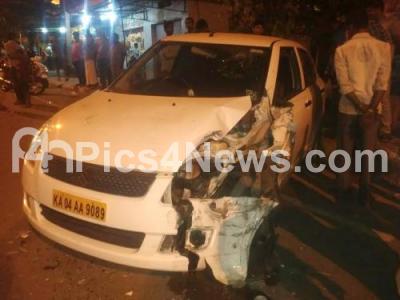 People looking at the car which was used by Rowdy Sheeter Ashish to escape from the police, 19year old Ashish who died after police shootout at Annaporneshwari Nagar, Ullal Road, Near Mahalakshmi Layout, in Bengaluru on Monday 7th November 2016