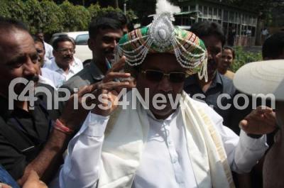 Photo Caption : CM Siddaramaiah was felicitated by Tipu Sultan supporters by making him wear a Tippu Sultan turban on his arrival at Krishna, in Bengaluru on Wednesday 9th November 2016