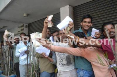 Long queues formed at banks across Bengaluru City today as people rushed to deposit and swap Rs 500 and Rs 1,000 notes, banned in a surprise announcement by Prime Minister Narendra Modi to check black or untaxed money, in Bengaluru on Thursday 10th November 2016