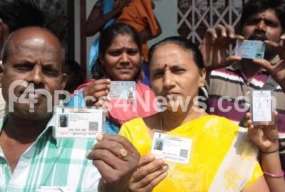 Photo Caption : People seen displaying their identification cards while depositing Rs 500 and Rs 1,000 notes in the banks to swap with new ones, after the old Rs 500 and Rs 1,000 notes were banned in a surprise announcement by Prime Minister Narendra Modi to check black or untaxed money, in Bengaluru on Thursday 10th November 2016