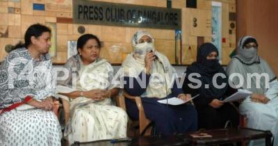 Photo Caption : Dr Asma Zehra Member Executive Committee, All India Muslim Personal Law Board with Shaistha Yusuff, President, Imdad E Nisa, Sulthana Begum, Deputy Commissioner of Commercial Tax and others seen addressing a press conference on Triple Talaq ( Triple Divorce) issue at Press Club, in Bengaluru on Friday 11th November 2016