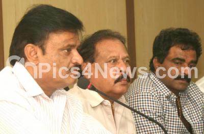 Photo Caption : Film Producers Muniratna with Sa Ra Govind and Rockline Venkatesh addressing press conference at Film Chamber, in Bengaluru on Tuesday 15th November 2016