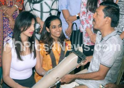 Actress Teena Ponnappa with Shweta Gupta, Chairperson Bangalore Ladies Circle , Cr Swapna Rajesh, Chairperson Area, Ranbir Singh, Chairman Area and Anjanil Gupta, Chairman, Bangalore Round Table donating artificial Limbs during ‘Help Someone Walk’ Campaign, in Bengaluru on Tuesday 15th November 2016