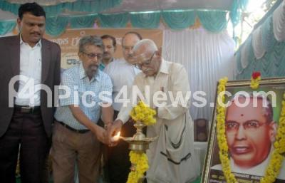 Photo Caption : Writer Shudra Srinivas with Former Director of State Library RK Badegarannavar inaugurating the National Library Week organized by Department of Public Libraries at Indira Priyaadarshani children library at Cubbon park, also seen are Dr Satish Kumar S Hosamani, Director of Libraries and Dr PY Rajendra Kumar Ex Director, in Bengaluru on Tuesday 15th November 2016