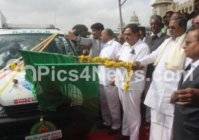CM Siddaramaiah Flagged Off 12 New Mobile Pollution Checking Vehicles