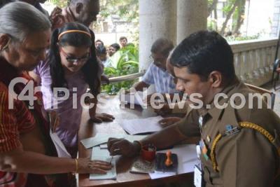 Photo Caption : A bank security personnel seen applying a ink mark to a woman after exchanging the demonetised Rs 500 and Rs 1000 currency notes at a bank, in Bengaluru on Wednesday 16th November 2016