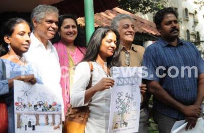 Photo Caption : Singer MD Pallavi joined a press conference at Press Club with volunteers against steel bridge Naresh Narsimhan, Prakash Belawadi and others to announce singing and painting campaign against the construction of steel bridge by destroying environment. Awareness campaign is on 20th November 2016, at Palace Grounds, in Bengaluru on Thursday 17th November 2016