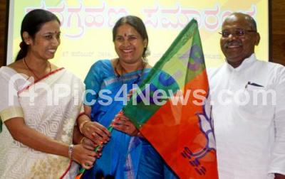 Photo Caption : BJP leader Bharati Shetty taking charge as a State BJP Women wing President at Jaganath Bhavan, also seen are Aruna Kumar, Ku Bharati Magadum and others, in Bengaluru on Thursday 17th November 2016
