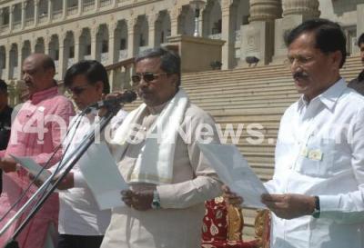 Photo Caption : CM Siddaramaiah administering the National Integration oath to officer on the occasion of National Integration Week at Vidhan Soudha, in Bengaluru on Saturday 19th November 2016