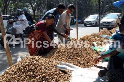 Photo Caption : Groundnut vendor selling Kadale kai (Groundnut) on Bull Temple Road on the eve of Kadalekai Parishe, in Bangalore on Sunday 20th November 2016
