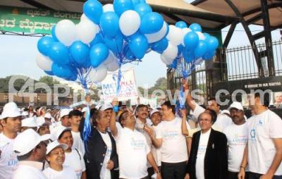 Photo Caption : Comedy Actor Doddanna, Ashwathnarayan, MLA, Dr V Shankar , Dr Dinesh Kamath and others inaugurating the walkathon on the occasion of World Diabetes Day at Maleswaram ground, in Bangalore on Sunday 20th November 2016