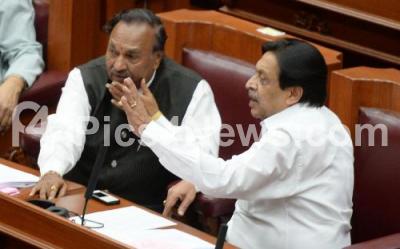 Photo Caption : Minister MR Seetharam seen with BJP Opposition Council leader KS Eshwarappa during the winter session of Karnataka Council at Suvarna Vidhana Soudha at Belagavi on Tuesday 22nd November 2016
