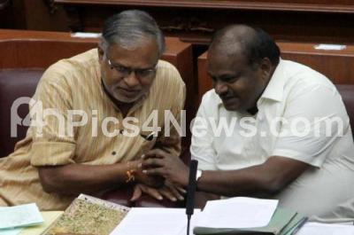 Photo Caption : BJP MLA Suresh Kumar and JDS MLA HD Kumarswamy seen during the winter session of Karnataka Assembly at Suvarna Vidhana Soudha in Belagavi on Wednesday 23rd November 2016