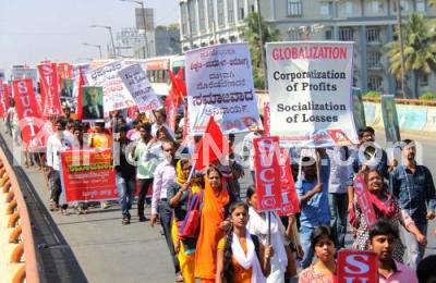Photo Caption : Members of SUCI partake in protest rally from City Railway station to Freedom Park to fulfill their various demands, in Bengaluru on Wednesday 23rd November 2016