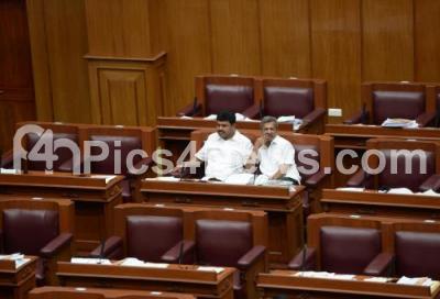 Photo Caption : BJP MLAs BY Raghavendra and Jeevaraj seen surrounded by empty seats during the winter session of Karnataka Assembly at Suvarna Vidhana Soudha at Belagavi on Friday 25th November 2016