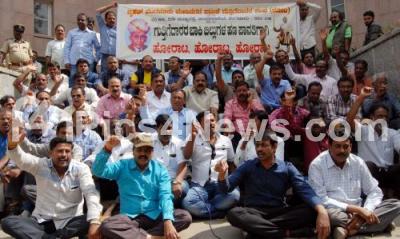 Event Description : Members of BBMP piece meal contractors holding a protest demonstration, demanding for their due payments in front of BBMP Council Hall entrance, in Bangalore on 29th November of 2016, in Bengaluru on Tuesday 29th November 2016