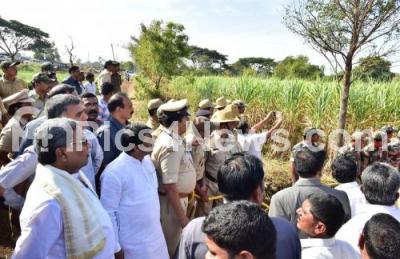 Photo Caption : CM Siddaramaiah with Minister Krishna Byregowda distributed Sugarcane Cutting Machine to Farmers in Maastimaradi Village Today in Belagavi Dist on Wednesday 30th November 2016