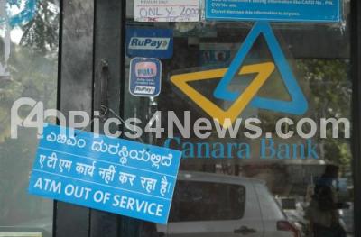 Photo Caption : An ATM with display sign “ATM OUT OF ORDER†seen as most of the ATMs are still not working and people are finding it difficult to meet their daily requirements to survive, in Bengaluru on Wednesday 30th November 2016