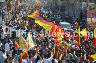 Photo Caption : A 3500 feet long Karnataka State flag was leading the procession, which marked the beginning of 82nd edition of Akhila Bharata Kannada Sahithya Sammelana, a three day State sponsored literary festival, began in Raichur on Friday 2nd December 2016