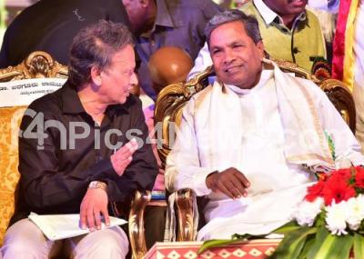 Photo Caption : CM Siddaramaiah seen with Baraguru Ramachandrappa, the president of the Kannada Sahithya Sammelana, during the inauguration of the 82nd edition of Akhila Bharata Kannada Sahithya Sammelana, a three day State sponsored literary festival, in Raichur on Friday 2nd December 2016