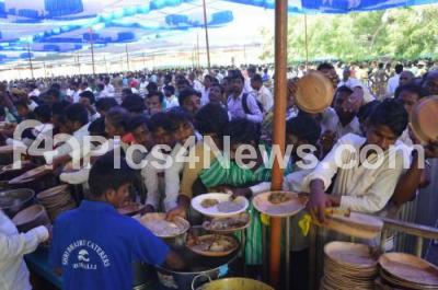 Photo Caption : Food being served during the 82nd edition of Akhila Bharata Kannada Sahithya Sammelana, a three day State sponsored literary festival, began in Raichur on Friday 2nd December 2016