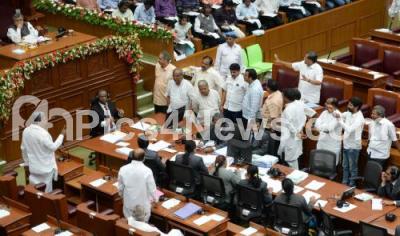 Opposition party MLAs arguing with CM Siddaramaiah during Assembly session at Suvarna Soudha, in Belagavi on Saturday 3rd December 2016