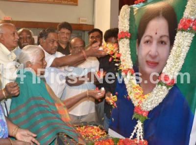 Event Description : Members of Tamil Sangham in Karnataka in Ulsoor, floral tribute to the portrait of Tamil Nadu CM Jayalalitha, who passed away yesterday, in Bengaluru on Tuesday 6th December 2016