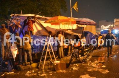 Photo Caption : People take cover as rains lash Bengaluru City due to the effect of Cyclone Vardah striking parts of Tamil Nadu and Andhra Pradesh, in Bengaluru on Monday 12th December 2016