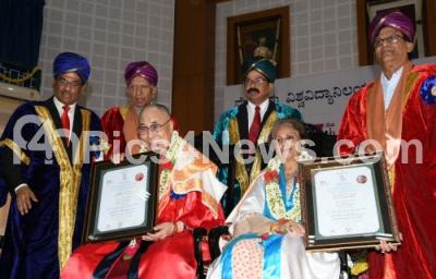 Photo Caption : Honorary doctorates were conferred on Tibetan spiritual leader His Holiness Dalai Lama and Maharani Pramoda Devi Wadiyar by Prof KS Rangappa, Vice Chancellor, University of Mysore at 97th Convocation of Mysore University, in Mysuru on Tuesday 13th December 2016