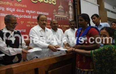 Photo Caption : Minister Roshan Baig with Prof SG Siddaramaiah and others presenting the certificates to the students of other states studying Kannada during a program at Vikas Soudha, in Bengaluru on Wednesday 14th December 2016