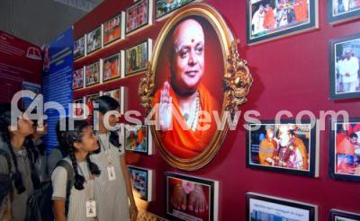 Photo Caption : School children going through the photo exhibition during Hindu Spiritual and Seva Mela at National College Grounds, in Bengaluru on Thursday 15th December 2016