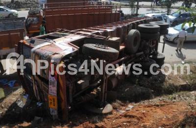Toppled Vegetable Truck near Sumanahalli Flyover