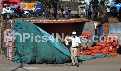 Toppled Vegetable Truck near Sumanahalli Flyover