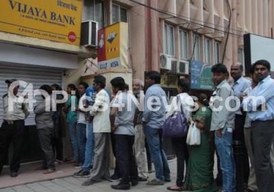 Photo Caption : People were standing in long queues to withdraw cash from limited ATMs functioning, even though the shutters of the ATMs were down, in Bengaluru on Friday 16th December 2016