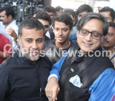 Photo Caption : Shashi Tharoor, Indian Politician and author and noted writer Chetan Bhagat seen at the Bangalore Literature Festival at the Royal Orchid Hotel, Old Airport Road, in Bengaluru on Saturday 17th December 2016
