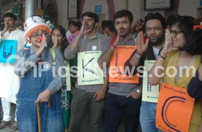 Members of Citizens of Bengaluru, Music Composer Raghu Dixit, students and fellow citizens formed human Chain on Bangarpet Bound passenger train in a campaign “Chuku Buku Beku” campaign in support for a commuter rail project for the Bengaluru City as the traffic situation of Bengaluru has worsened and demand for more commuter rail projects instead of constructing flyovers, the campaign was held at Cantonment Railway Station, in Bengaluru on Saturday 17th December 2016