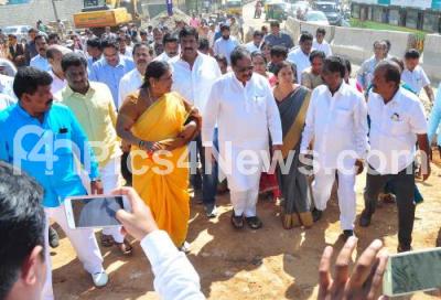 Photo Caption : Minister for BDTP KJ George with Mayor Padmavathi and others inspecting the ongoing Flyover construction at Padmanabhanagar, in Bengaluru on Monday 19th December 2016