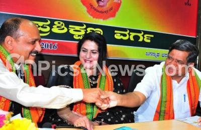 Photo Caption : BJP Leaders Jagdeesh Shetter with Dr Nahida Sheikh and Abdul Azeem at the Minority Morcha meeting at BJP office, in Bengaluru on Wednesday 21st December 2016