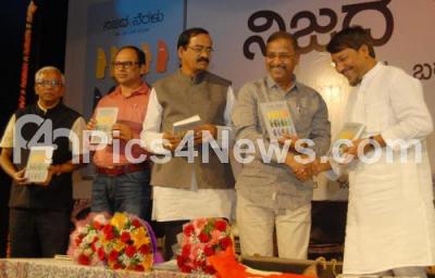 Photo Caption : NR Vishukumar with Prof MallepuramG Venkatesh and others releasing the book “Nijada Neralu†authored by Dr MS Murthy at Nayana, in Bengaluru on Thursday 22nd December 2016