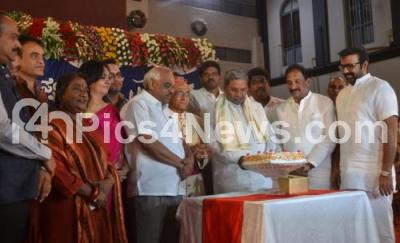 Photo Caption : CM Siddaramaiah with Most Rev Dr Bernard Moras, Archbishop of Bangalore, Ministers KJ George, Ramesh Kumar, MLA NA Harris cutting the Christmas cake during the Archdiocese of Bangalore Christmas Get Together 2016 program at St Germains School, Coles Park, in Bengaluru on Thursday 22nd December 2016