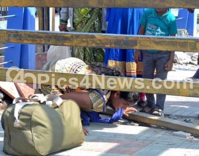 People trying to cross from the closed barricades at Majestic, in Bangalore on Sunday 25th December 2016