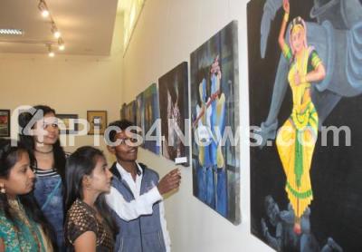 Students and participants of Vijaya college of fine arts during the group painting exhibition at Chitrakala Parishat, in Bengaluru on Monday 26th December 2016