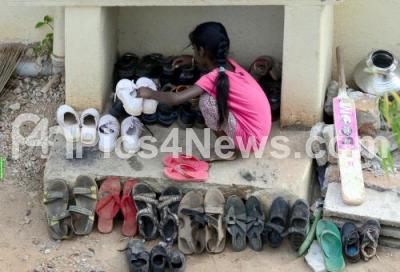 Photo Caption : A girl seen arranging the shoes at Sneha Jyothi Charitable trust, which is very objectionable, in Bengaluru on Wednesday 28th December 2016