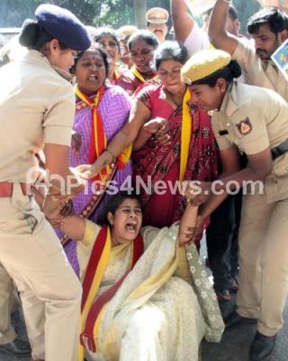 Event Description : Members of Karnataka Rakshana Vedike protest at Rajbhavan against Central Government for not giving permission to write NEET exams in Kannada language, in Bengaluru on Wednesday 28th December 2016