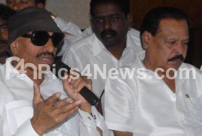 Photo Caption : Kannada Activists Vatal Nagaraj and Sa Ra Govind addressing press conference about Mahadayi Kalasa Banduri project at Hotel Woodland, in Bengaluru on Wednesday 28th December 2016