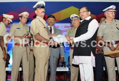 Event Description : Home Minister Dr G Parameshwar with DGP Om Prakash and others presented employment certificates and badges to the newly recruited policemen and women during the recruitment program of 1200 police personnel in various police departments, the program was held at Bangalore International Exhibition Centre at Tumkur Road, in Bengaluru on Thursday 29th December 2016