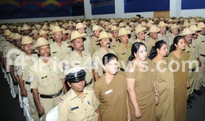 Home Minister Dr G Parameshwar with DGP Om Prakash and others presented employment certificates and badges to the newly recruited policemen and women during the recruitment program of 1200 police personnel in various police departments, the program was held at Bangalore International Exhibition Centre at Tumkur Road, in Bengaluru on Thursday 29th December 2016